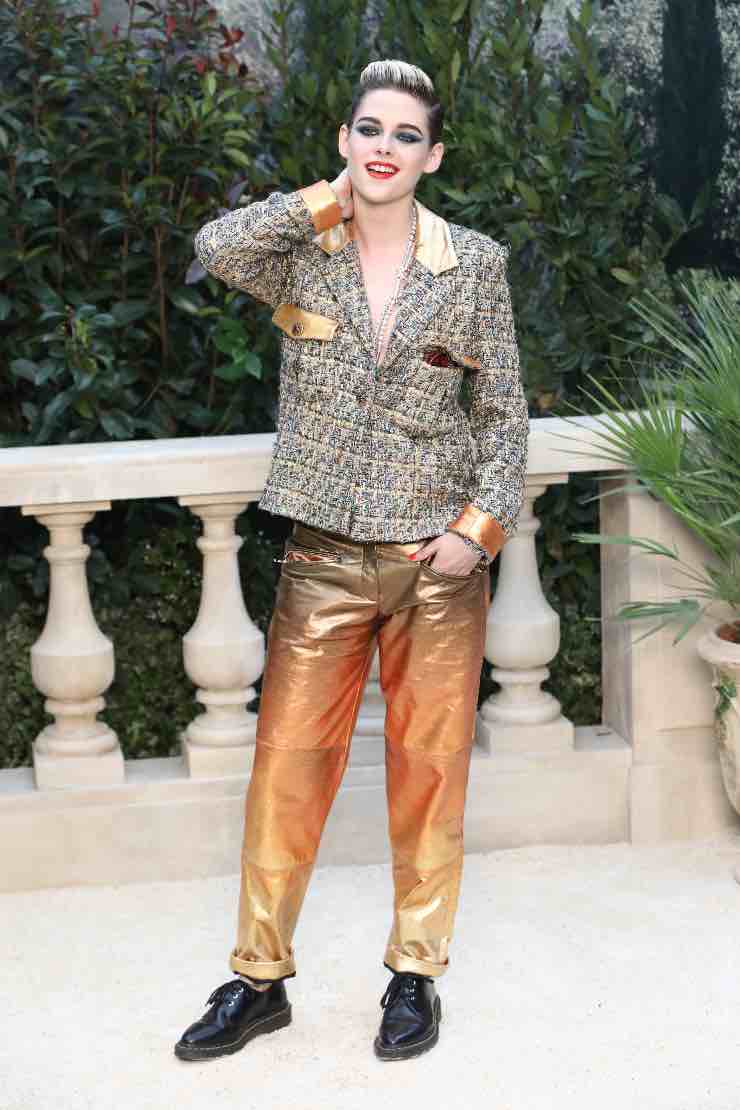 Alla sfilata parigina per la collezione primavera estate 2019 di Chanel Kristen Stewart ha invece ceduto a un eccessivo tocco gold. Passino infatti le rifiniture sulla giacca, già difficili da accettare ma con le quali possiamo forse scendere a patti, peccato però poi che l’occhio debba scendere fino agli assurdi pantaloni totalmente metallizzati. Come se non bastasse ecco poi ancora una volta le care strigate. La debacle è completa.