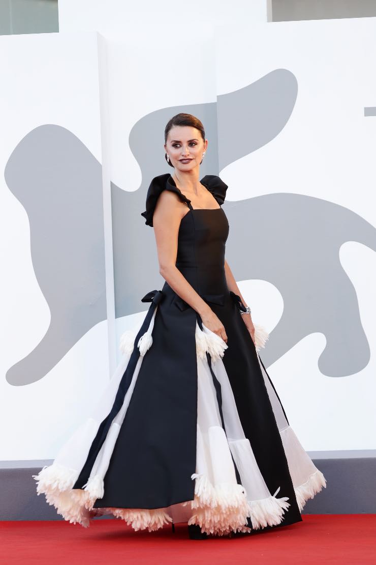 Per ultimo non potevamo che lasciare l’abito simbolo di questa edizione del Festival del Cinema di Venezia, il vestito bianco e nero che entrerà senza dubbio nella storia della kermesse. Lo stile boho-chic, con i richiami al passato e i dettagli carichi di luxury, donano a Penelope Cruz un fascino unico in questo abito nero con bretelle a volant e con una gonna che lascia trasparire tra le pieghe spicchi di bianco piccole deliziose pappine in tinta: torna ancora il bianco e nero ma in una veste unica nel suo genere.