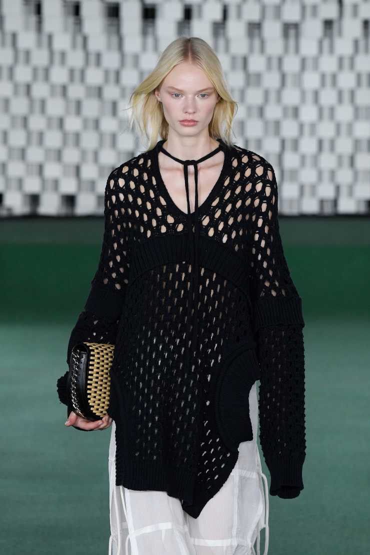 Si parte con una Stella McCartney fortemente ispirata dalle tendenze passate, ma con una chiave moderna squisita e a dir poco elegante: completi leggeri, forme geometriche ben definite sul corpo, che però non danno l’effetto gessato o duro, bensì morbido e sinuoso. Spalline, spalline e spalline, quest’estate non rinunceremo ai blazer eleganti, adatti a qualsiasi occasione e con un tocco anni 60 che è stato il valore aggiunto di tutte le collezioni PE 2022. Il crochet si riconferma con elementi ancora più decorativi, lane traforate a trama larga per una freschezza infinita.
