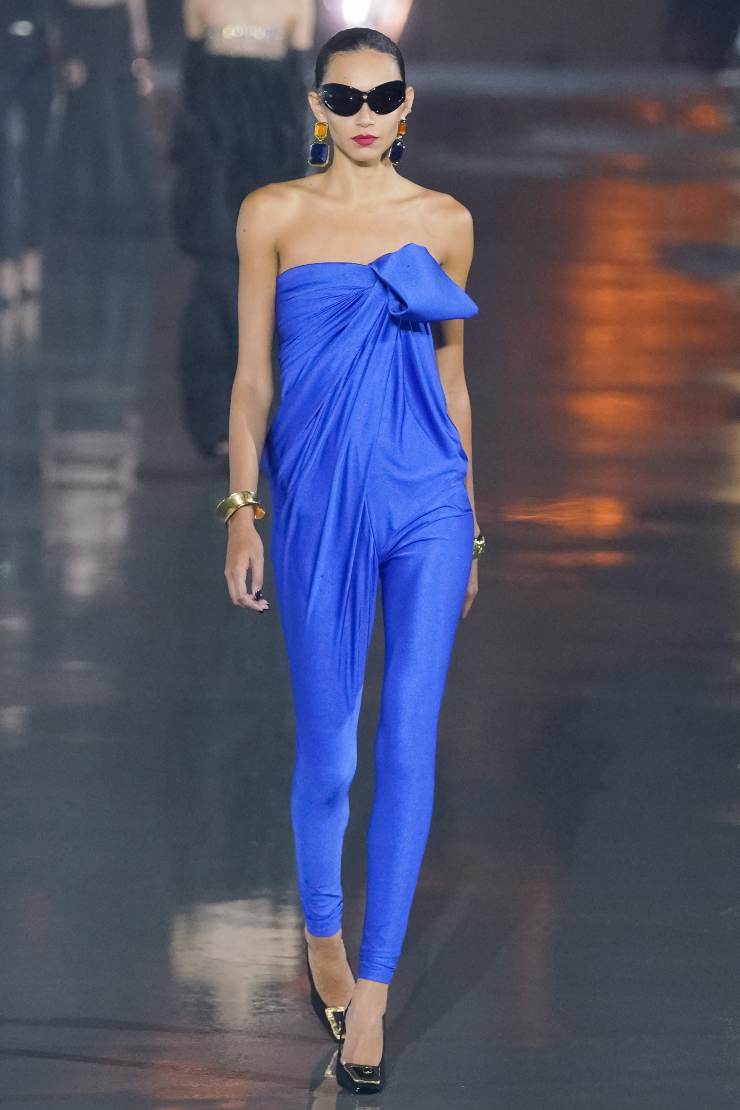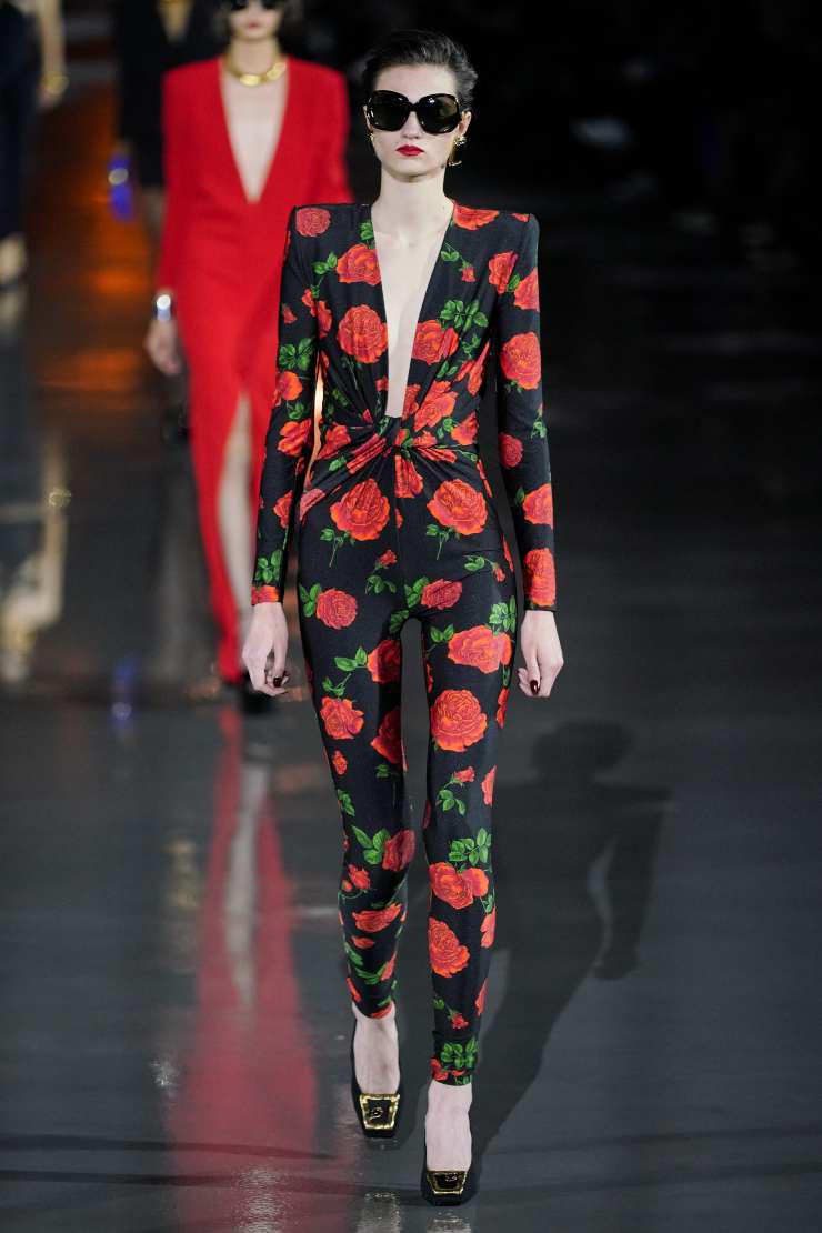 Saint Laurent ha il bisogno di mettere in risalto la figura femminile, la sua continua musa ispiratrice e per farlo, si serve del design tipico degli anni 60 e 70. Anche in questo troviamo tailleur, mise complete, tutine morbide che ricadono lisce sul corpo con spalline ben visibili e pronunciate, per una sensualità mista ad eleganza davvero mozzafiato. Stampe di rose, fiori, con toni più caldi e simboli vividi rendono l’estate un vero successo. Maglie, corpetti, bluse e abitini vengono annodati sul corpo e sul seno, per generare una morbidezza da lasciare letteralmente senza parole.