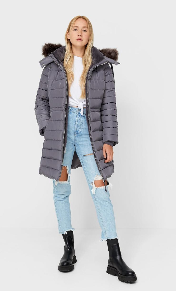 Stradivarius invece ci propone un modello un po’ più casual, imbottito con pelliccia sintetica, water resistant e vita regolabile con comodi lacci. Fodera interna in morbido e caldo pile, polsini con interno in maglia e lunghezza al ginocchio, al prezzo di 75,99 euro.