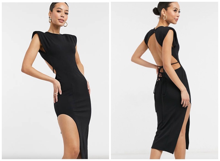 Asos propone invece un abito con spacco importante che, abbinato alla scollatura sulla schiena non risulta comunque volgare poiché il tutto sembra assai ben equilibrato. Il costo estremamente competitivo è poi la ciliegina sulla torta: 34,99 euro.