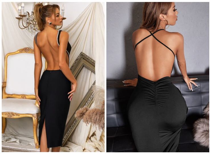 Abbiamo innanzitutto due proposte firmate Shein, rispettivamente quarantatré e nove euro: la prima ha un bordo glitterato e schiena totalmente nuda, la seconda variante presenta invece un leggero incrocio sulla parte alta della schiena ma, in entrambi i casi, la lunghezza linguette da un tocco raffinato all’insieme sebbene molto seducente.