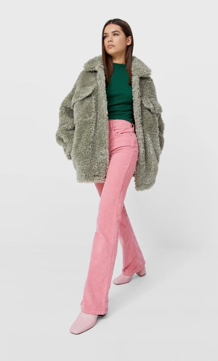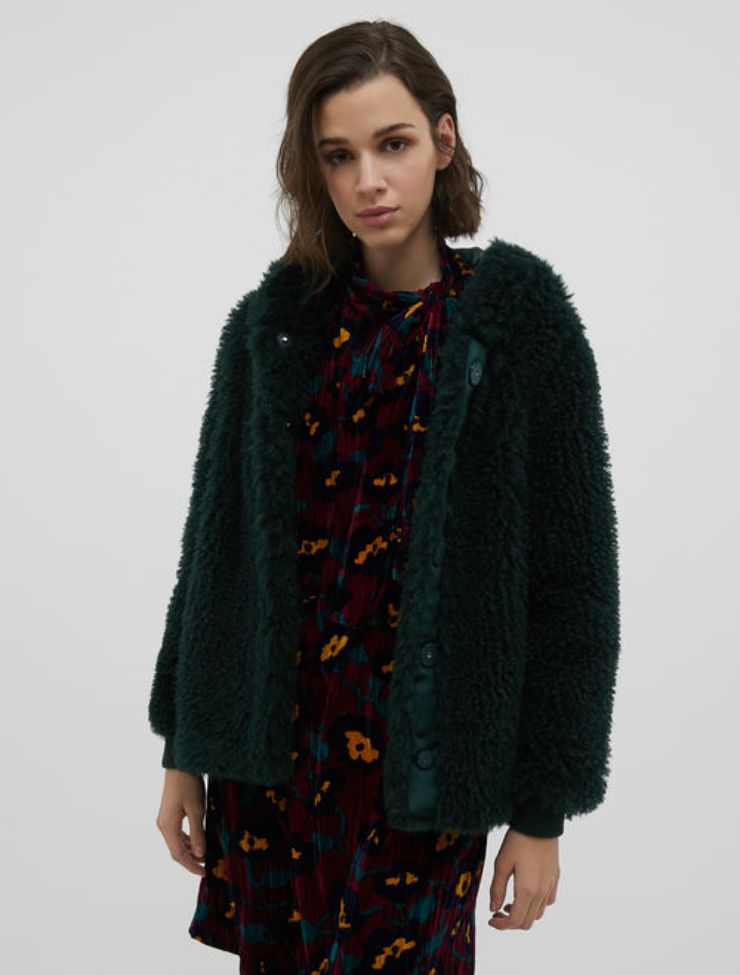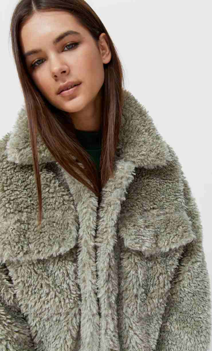 Partiamo con una fascia di prezzo medio/bassa e Stradivarius promette quanto propone: giacca in stile montone, un teddy romantico, dal colore versatile, tenue e da poter abbinare a diverse idee di outfit. Colletto rever sottile, ma abbondante, tasconi sul davanti e vestibilità oversize che rendono il tutto eternamente sfizioso e decisamente accessibile a diverse tipologie di fisico. Con 59,90 euro portate a casa un vero gioiellino di morbidezza.