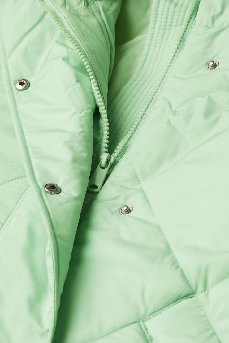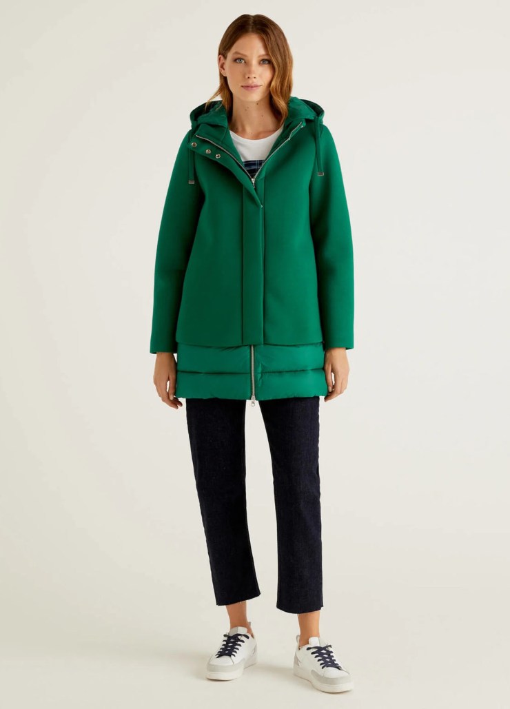 Benetton invece propone una gamma un po’ più alta nel prezzo, ma ugualmente accessibile. Se il colore di Gaia vi ha appassionato, questo giacchino semi trapuntato farà al caso vostro. Il colore è intenso e tende più verso l’azzurro, nonostante le nuance verdi siano presenti, tessuto misto modal con cappuccio, interni e bordini in trapuntato, collo a fascetta e chiusura bifasica, a doppia zip o a bottoni in clip. Tasche nascoste sui fianchi e linea oversize, seppur ben riesce a definire al meglio le linee del corpo. Con 149 euro portiamo a casa un capo adatto ai mesi freddi, ma con uno stile impeccabile!