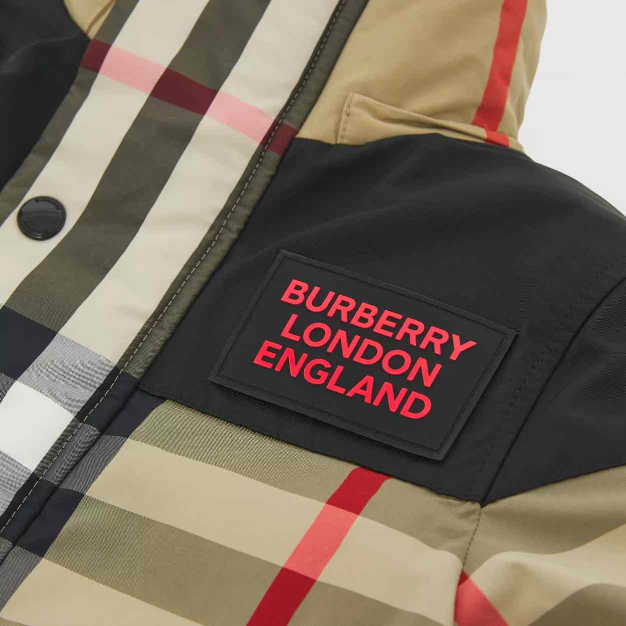 Sicuramente ciò che salta all’occhio non appena si guarda questo prezioso giacchino Burberry è lo stile tartan: graziosissime linee si intersecano fra loro formando dei quadretti piccoli e sottili, la geometria è viva e pulsa sul tessuto, nonostante il tutto non risulti eccessivamente costruito o duro.