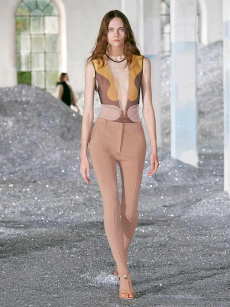 Gli abitini, dalle linee sottili, perdono l’oversize e riacquistano lo skinny di una volta, il tutto però sembra incastonato in look a macchia, come se fosse caduto del caffè per sbaglio. Ma non è per nulla un errore, anzi, qualcosa di voluto e che funziona, che accende un sorriso sulle labbra per la modernità che non solo si osserva, ma si gusta e si annusa.