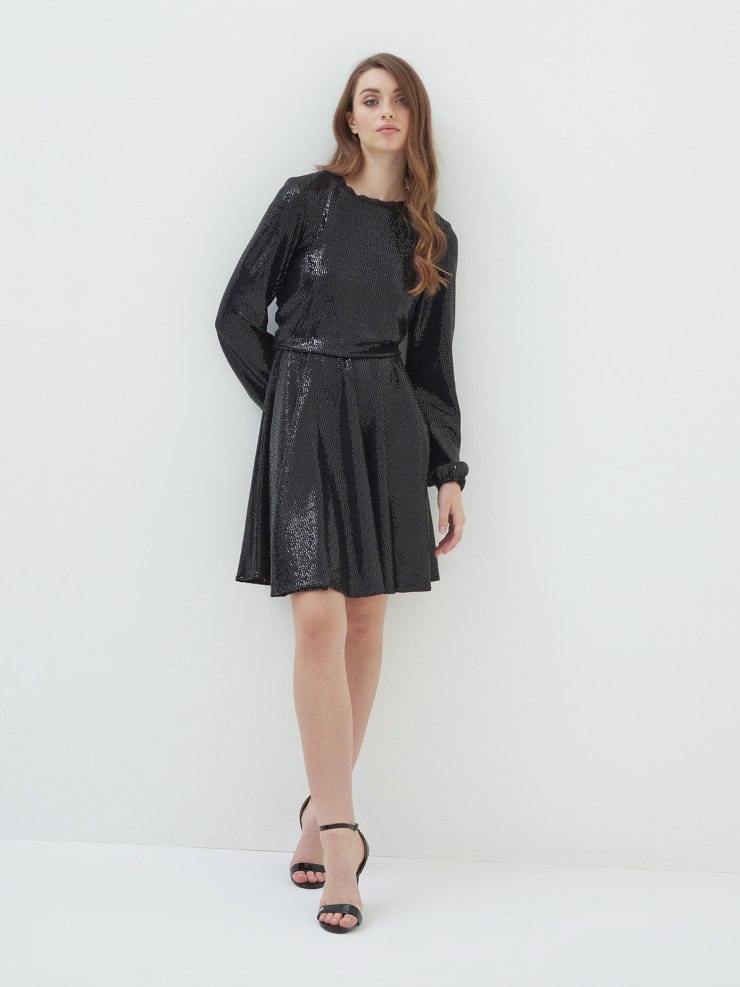 Continuiamo con lui, il grande Zara che neppure stavolta ci delude, proponendoci un mini dress dal colore glossy, interessante e dolcissimo, dai freschi sentori del lampone: abito corto con spalline sottilissime, smanicato, scollo a barca dritto, total paillettes e super sexy, avvitato ma non troppo avvolgente, cade dritto sui fianchi e si presenta davvero sensuale. Da indossare con un trench, un blazer, un teddy e perché no, anche con una semplicissima mantella, tocco di classe? Degli stivali velvet neri oppure laccati!