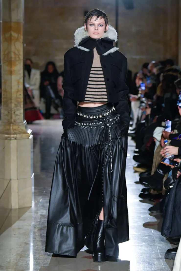 Pelle e plissé, due accoppiate da sempre vincenti, tornano squisite in passerella come se il connubio volesse danzare e riprendersi ciò che è suo, garantendo un’eleganza davvero sublime, lunghezze esagerate delle gonne e aderenze sostenute sui corpetti ci regalano una perfetta fusione di charme, benessere e praticità.